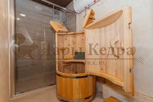 Круглая фитобочка из кедра - это мини парная, которую можно использовать не только в спа-салонах, но и дома. Такая модель наиболее компактна и мобильна. Толщина стенок составляет 40-45 мм, что позволяет увеличить срок службы изделия. Фитобочка оборудована откидными створками, дверцей и отверстием для головы. Верхний скос изделия делает положение головы более комфортным и улучшает обзор. Во время парения человек сидит внутри кедровой бочки, а голова находится снаружи. Благодаря этому исключается возможность перегрева. Подлокотники из кедра, встроенные ручки на створках и двери делают эксплуатацию более удобной.
